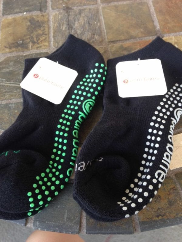 Classes should be taken wearing comfortable clothes and I highly recommend purchasing “sticky socks,” so you can easily grip the floor during class. I LOVE mine!