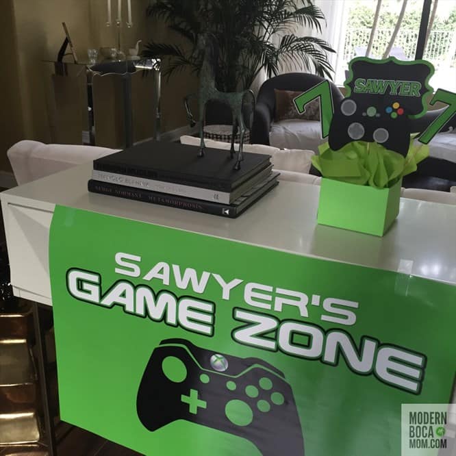 Repeat after me… Etsy is your friend for an Xbox-themed birthday party. A quick “Xbox” search yielded an awesome poster and centerpiece. I was done with decorations in under 5 minutes—except for the 8:30am run to Party City for balloons the day of the party.