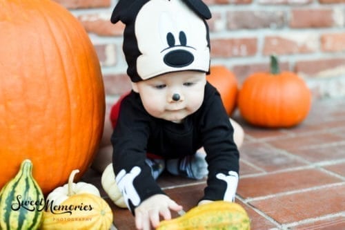 I was excited to continue our Halloween photoshoot tradition after last year’s rainy, but awesome session at Bedner’s. And this year, we were able to add Avery’s adorable baby cousin to the mix! How cute are they in this Mickey and Minnie Mouse Halloween photoshoot?