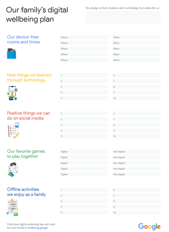 Here’s an example of the Google digital wellbeing Family Guide poster you can actually print and hang in your home: