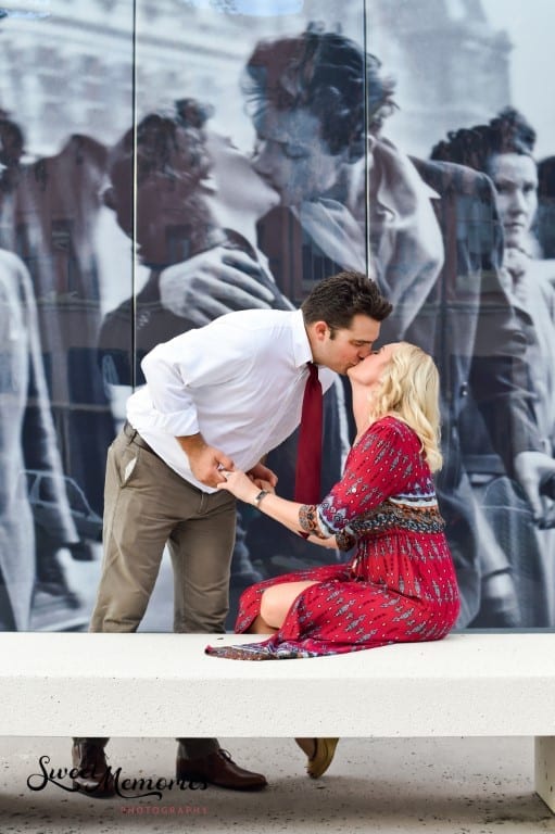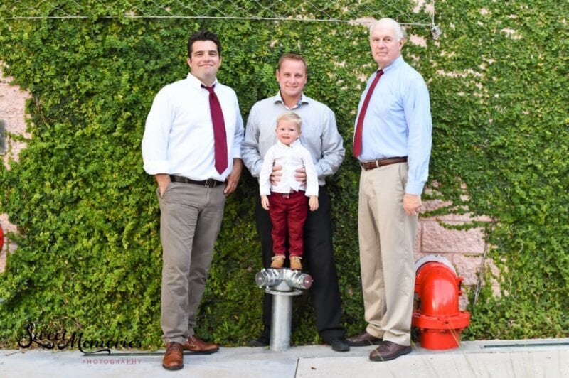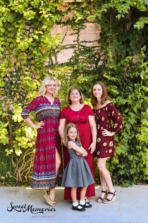 I wanted to go “red” in 2019 with our wardrobe because I thought the color would really pop against the ivy-covered walls and sculptures outside the Museum. Also, I recommend bringing your own chair or bench to any photo shoot to create some height variations– especially in a group. My piano bench really helped us out this year!