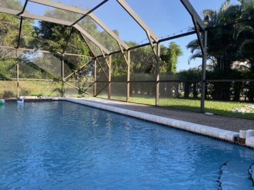 And luckily, our pool screen enclosure was still in good/great/excellent shape, so we didn’t have to do anything there besides the occasional screen replacement. My hubby, Handy Andy Boca, handles that and I have a local vendor on speed dial in case he can’t (i.e. the really high ones).