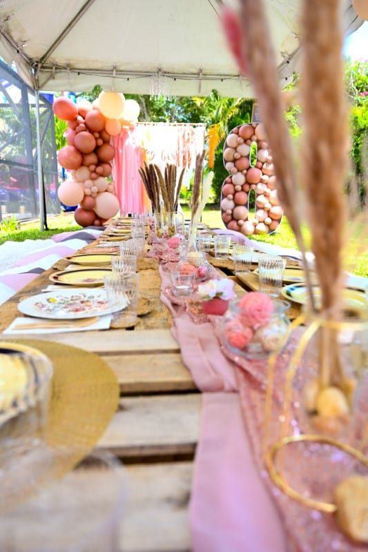 We are lucky enough to have a pretty good sized backyard next to our pool and patio. So, in addition to the tented DIY boho pallet picnic setup, we ordered a Disney Princess bouncy castle from Premier Bounce N’ Slide. We use them for EVERYTHING! Love this local business. Their service is impeccable.