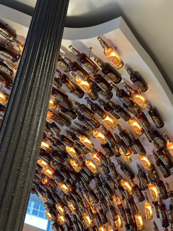 Sip your frothy cup of Butterbeer underneath a stunning display of glowing Butterbeer bottles. Each one is adorned with a must-have collectible Mina Lima label. Hundreds of bottles “rise from the floor” and gracefully “float above the bar”, while Butterbeer itself magically flows across the ceiling through intricate copper pipes.
