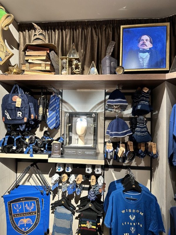 Prepare to be captivated as you step into this enchanting world. Gaze up at the majestic model of Fawkes the phoenix hanging from the ceiling, created exclusively for the New York store. It’s an awe-inspiring sight that will transport you into the Wizarding World.