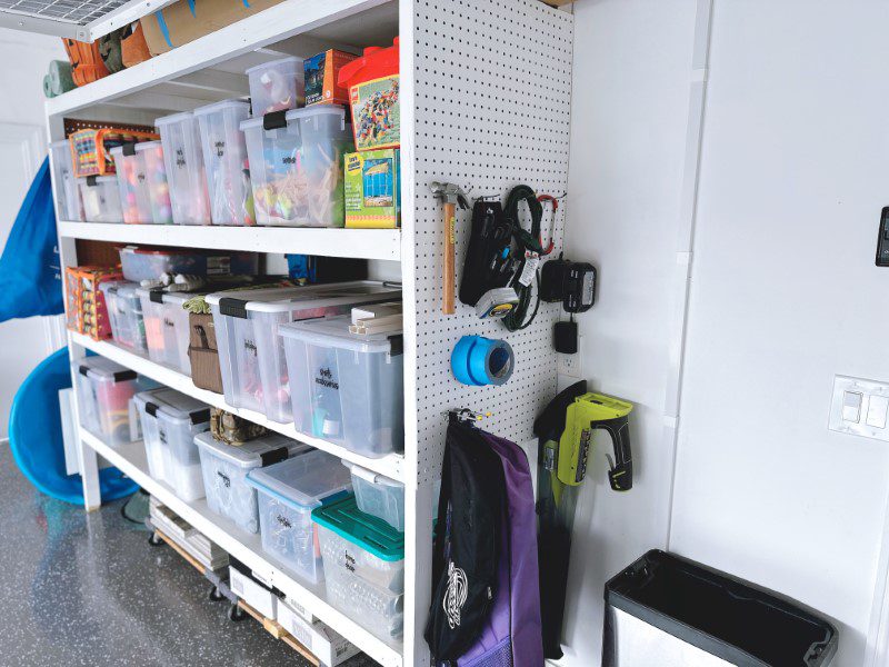 Custom Shelves & Waterproof Bins: Handy Andy Boca built custom shelves to accommodate clearly labeled (I love these Amazon labels), waterproof bins. Now, everything has a designated spot, making it so much easier to find items and seasonal decor when needed.