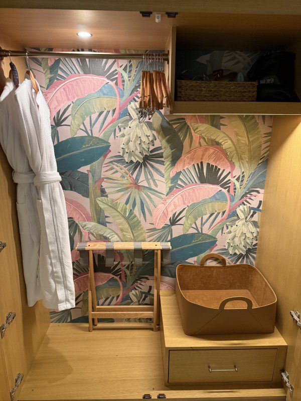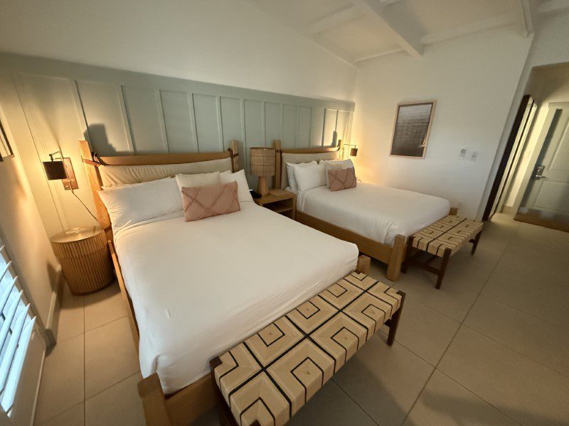 Let’s talk accommodations: we stayed in one of the spacious, bungalow-style retreats with two queen beds, which perfectly balanced that breezy, beachy charm with all the modern touches a mom like me appreciates. I couldn’t get over the pink palm tree closet!