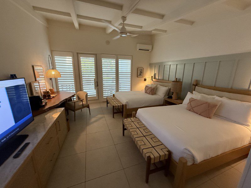 As or the room itself, think soft pastel hues, woven wicker textures, polished wood details, and a private patio for morning coffee or post-beach wine (yes, please). Outdoors, you feel like you’re invited to truly relax between adventures, surrounded by swaying palms and the sound of the surf.