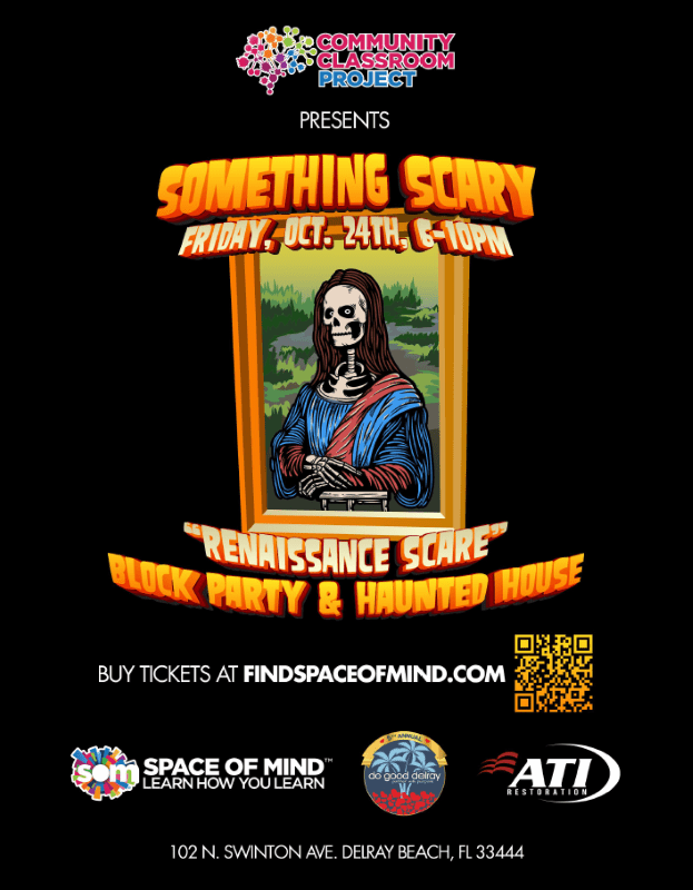 Delray Beach’s most frightfully fun night is back—and what makes it truly special is that it’s dreamed up, designed, and run entirely by students. On Friday, October 24, Space of Mind will transform its historic (and officially haunted!) home into a spine-tingling Renaissance Scare Haunted House for the 9th annual SOMething Scary Block Party & Haunted House. Every chilling corridor, creepy character, and ghoulish game is part of a trimester-long project where students collaborate to create one of Delray’s most beloved Halloween events in South Florida traditions.